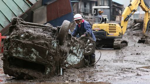 De kustplaats Atami werd gisteren getroffen door een modderstroom. Zo'n 20 mensen worden vermist.