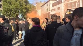 Rond 15.30 uur was de rust weer enigszins hersteld, zegt de politie, die zijn handen vol had om de groepen gescheiden te houden.