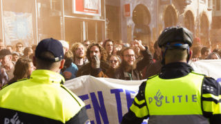 Verslaggever Trudy van Rijswijk zegt dat de opstootjes op verschillende plekken op het plein uitbraken. "Tientallen ME'ers stonden opgesteld om de rust te bewaren."