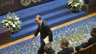 In het Vredespaleis in Den Haag werd vanochtend het 70-jarig bestaan van het Internationaal Gerechtshof (ICJ) gevierd. Koning Willem-Alexander was aanwezig bij de plechtigheid. Hij luisterde naar toespraken van onder anderen Ban Ki-moon, de secretaris-generaal van de Verenigde Naties en minister Koenders.