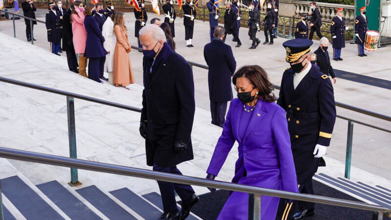 Een kwartier na Biden is ook vicepresident Harris aangekomen in de buurt van het Witte Huis. Zij legde eveneens het laatste eindje lopend af met familie. Na een wandeling van enkele minuten ging zij het Eisenhower Executive Office Building naast het Witte Huis binnen, de plek waar de Amerikaanse vicepresident haar kantoor heeft.