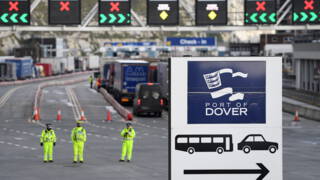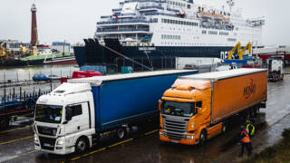 Handjevol vrachtwagens op eerste 'brexit-ferry' van 2021 van Calais naar Dover